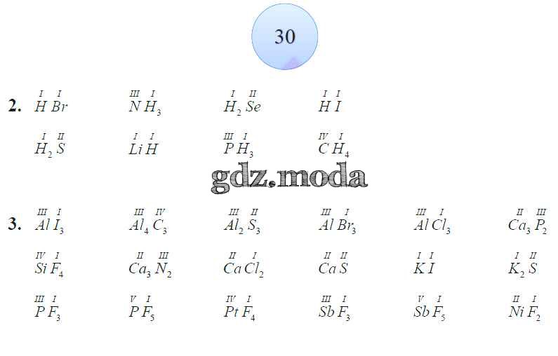 ГДЗ решение к заданию № 30 Химия 8 класс рабочая тетрадь Боровских Т.А. (к уч. Рудзитиса) Экзамен 2013 ФГОС бесплатно на гдз.мода!