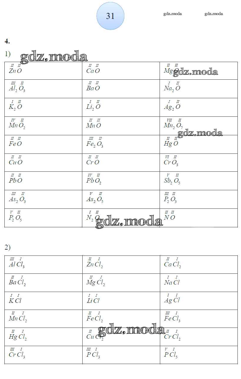 ГДЗ решение к заданию № 31 Химия 8 класс рабочая тетрадь Боровских Т.А. (к уч. Рудзитиса) Экзамен 2013 ФГОС бесплатно на гдз.мода!