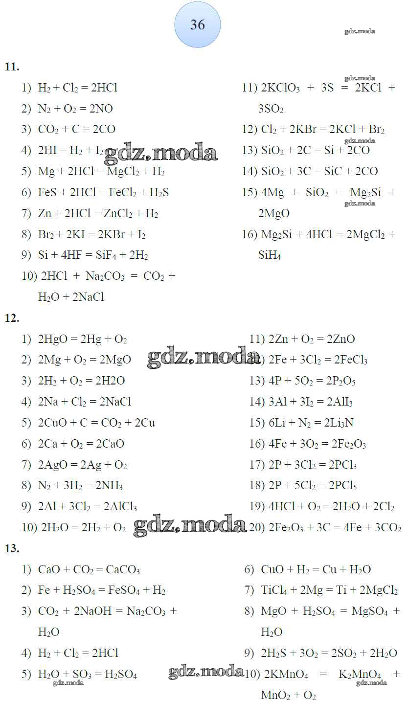 ГДЗ решение к заданию № 36 Химия 8 класс рабочая тетрадь Боровских Т.А. (к уч. Рудзитиса) Экзамен 2013 ФГОС бесплатно на гдз.мода!