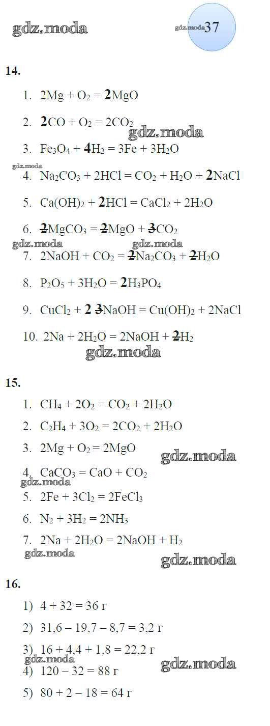 ГДЗ решение к заданию № 37 Химия 8 класс рабочая тетрадь Боровских Т.А. (к уч. Рудзитиса) Экзамен 2013 ФГОС бесплатно на гдз.мода!