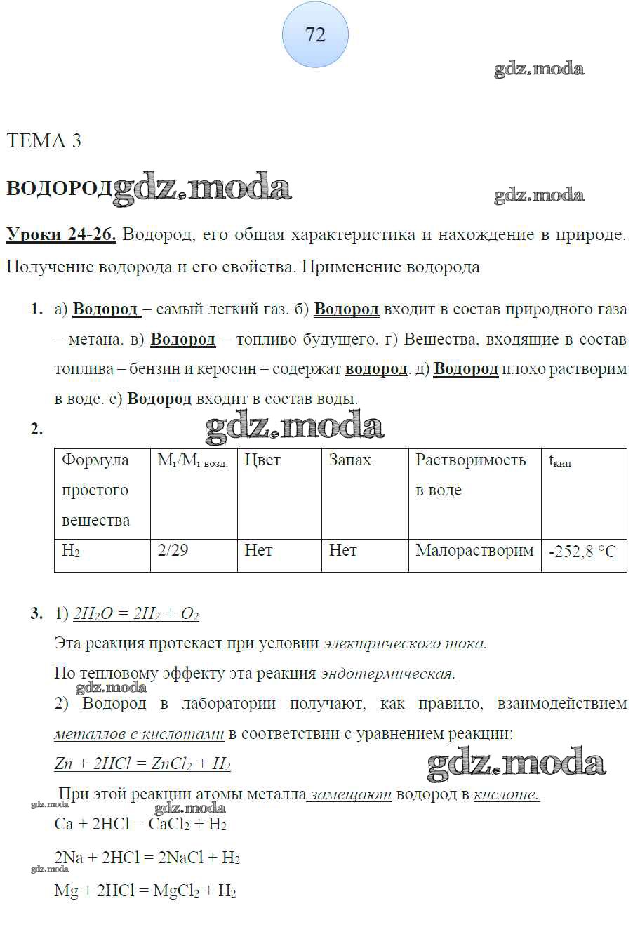 ОТВЕТ на задание № 72 Рабочая тетрадь по Химии 8 класс Боровских УМК