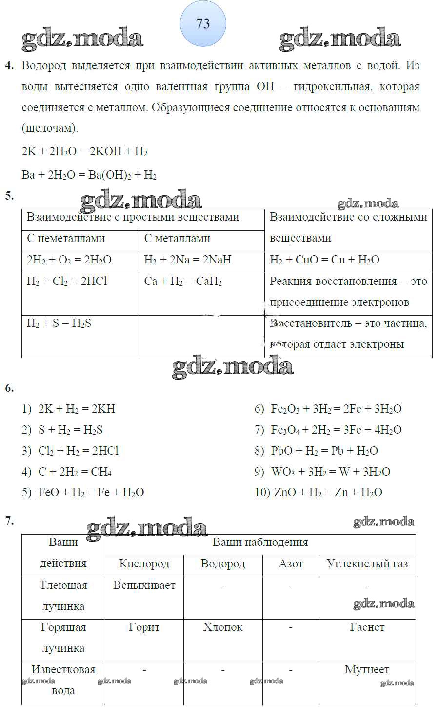 ГДЗ решение к заданию № 73 Химия 8 класс рабочая тетрадь Боровских Т.А. (к уч. Рудзитиса) Экзамен 2013 ФГОС бесплатно на гдз.мода!