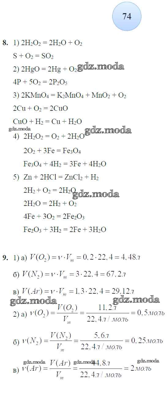 ГДЗ решение к заданию № 74 Химия 8 класс рабочая тетрадь Боровских Т.А. (к уч. Рудзитиса) Экзамен 2013 ФГОС бесплатно на гдз.мода!