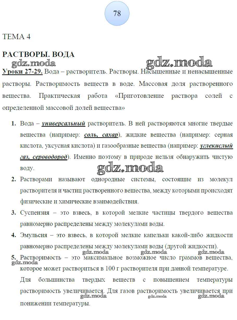 ОТВЕТ на задание № 78 Рабочая тетрадь по Химии 8 класс Боровских УМК