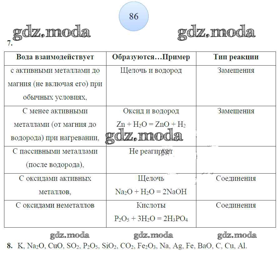 ГДЗ решение к заданию № 86 Химия 8 класс рабочая тетрадь Боровских Т.А. (к уч. Рудзитиса) Экзамен 2013 ФГОС бесплатно на гдз.мода!