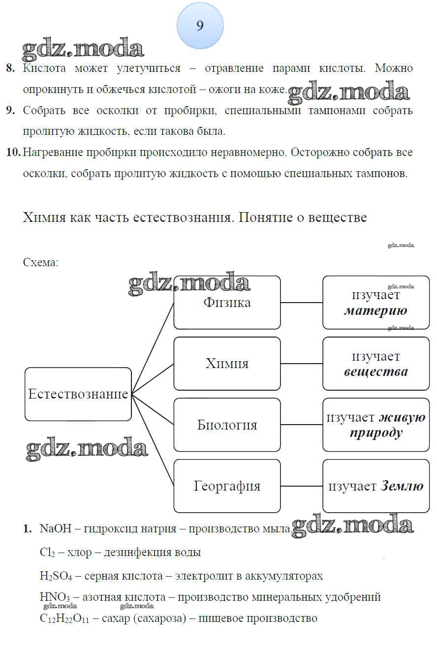 ГДЗ решение к заданию № 9 Химия 8 класс рабочая тетрадь Боровских Т.А. (к уч. Рудзитиса) Экзамен 2013 ФГОС бесплатно на гдз.мода!