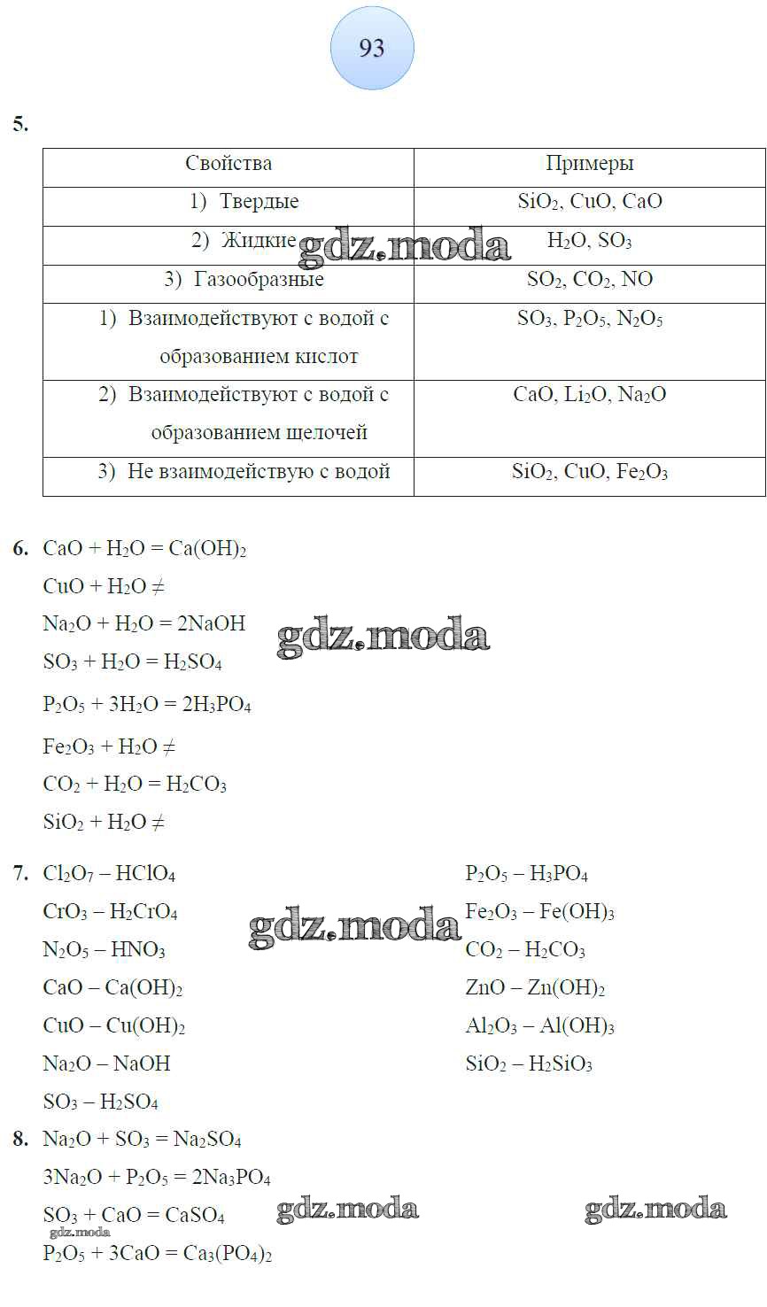 ОТВЕТ на задание № 93 Рабочая тетрадь по Химии 8 класс Боровских УМК