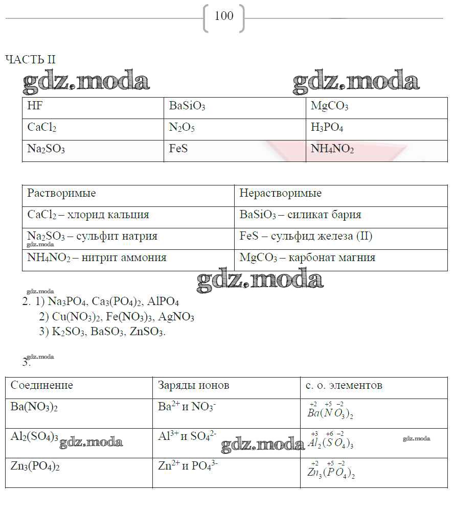 ГДЗ решение к заданию № 100 Химия 8 класс рабочая тетрадь Габриелян О.С. Дрофа 2018 ФГОС бесплатно на гдз.мода!