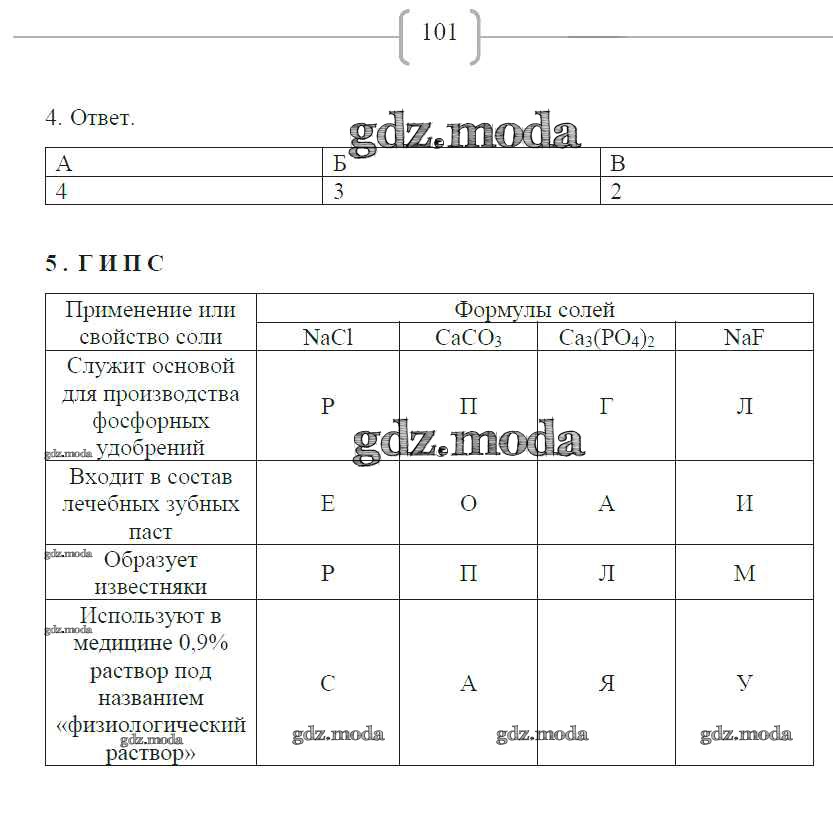 ГДЗ решение к заданию № 101 Химия 8 класс рабочая тетрадь Габриелян О.С. Дрофа 2018 ФГОС бесплатно на гдз.мода!
