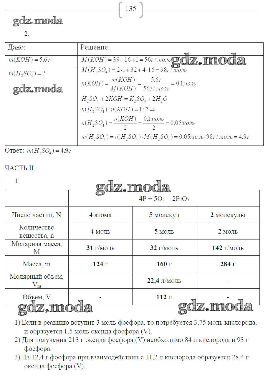 ГДЗ решение к заданию № 135 Химия 8 класс рабочая тетрадь Габриелян О.С. Дрофа 2018 ФГОС бесплатно на гдз.мода!