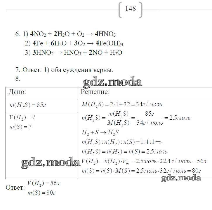 ГДЗ решение к заданию № 148 Химия 8 класс рабочая тетрадь Габриелян О.С. Дрофа 2018 ФГОС бесплатно на гдз.мода!