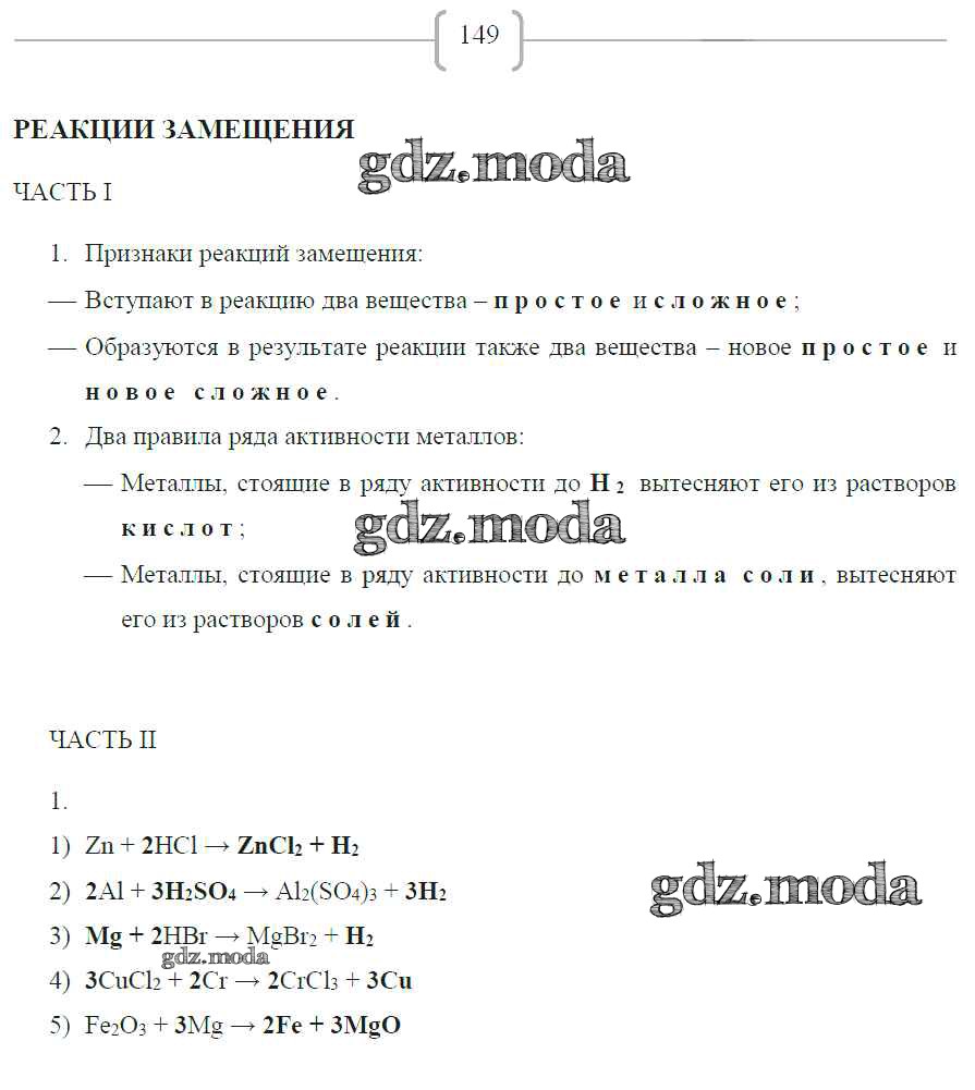 ГДЗ решение к заданию № 149 Химия 8 класс рабочая тетрадь Габриелян О.С. Дрофа 2018 ФГОС бесплатно на гдз.мода!