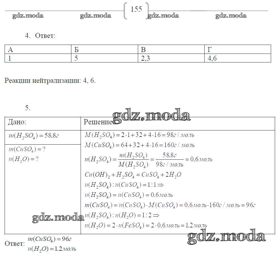 ГДЗ решение к заданию № 155 Химия 8 класс рабочая тетрадь Габриелян О.С. Дрофа 2018 ФГОС бесплатно на гдз.мода!