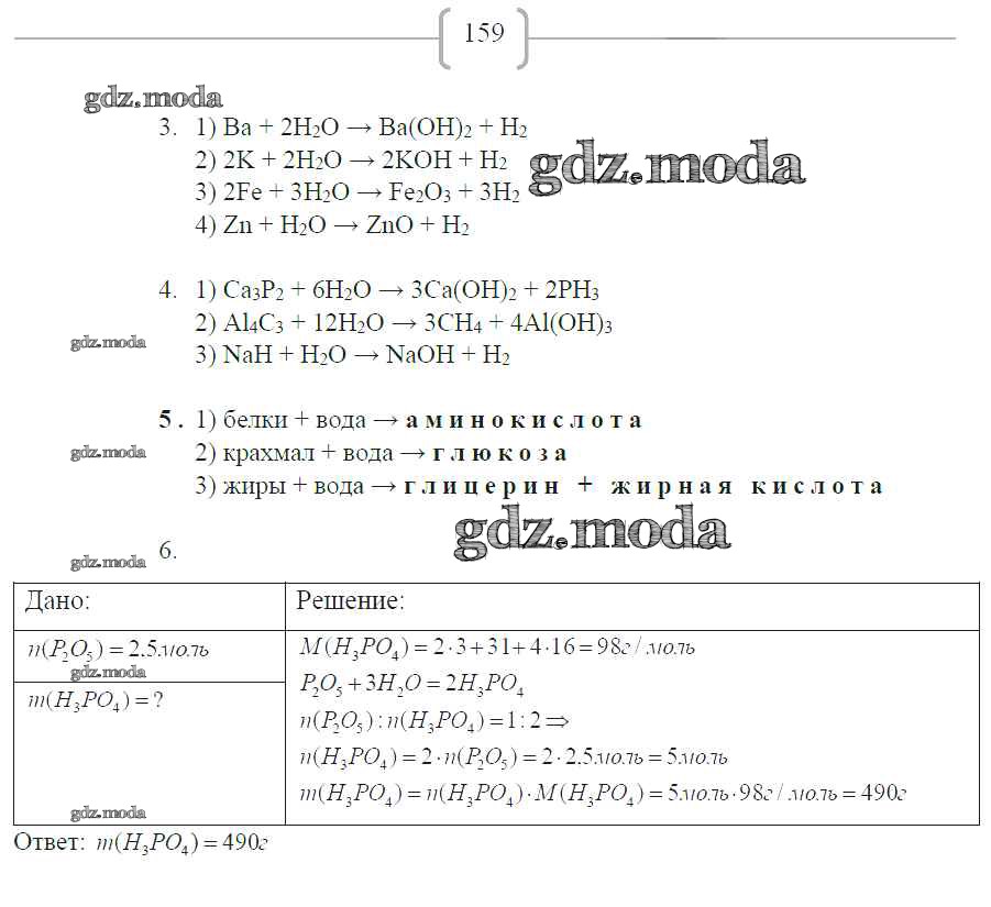 ГДЗ решение к заданию № 159 Химия 8 класс рабочая тетрадь Габриелян О.С. Дрофа 2018 ФГОС бесплатно на гдз.мода!