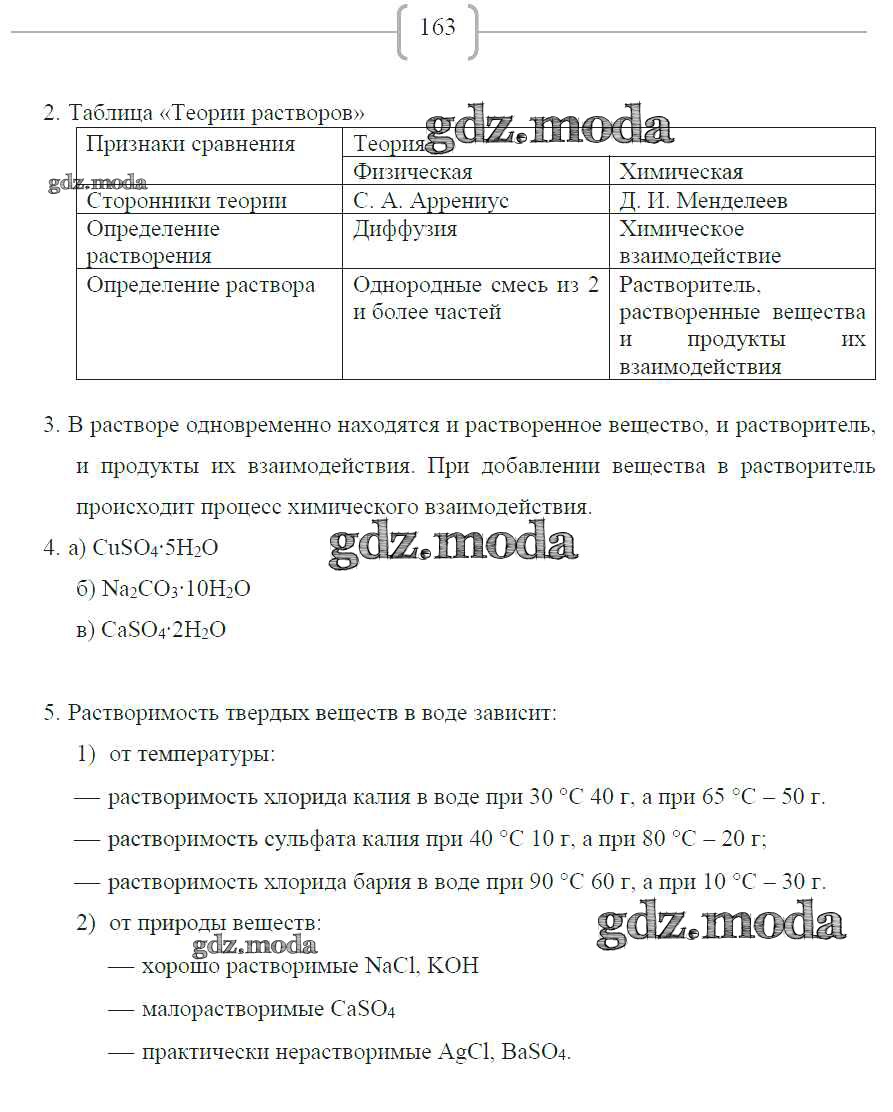 ГДЗ решение к заданию № 163 Химия 8 класс рабочая тетрадь Габриелян О.С. Дрофа 2018 ФГОС бесплатно на гдз.мода!