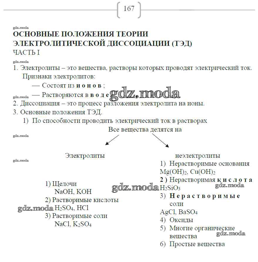 ГДЗ решение к заданию № 167 Химия 8 класс рабочая тетрадь Габриелян О.С. Дрофа 2018 ФГОС бесплатно на гдз.мода!