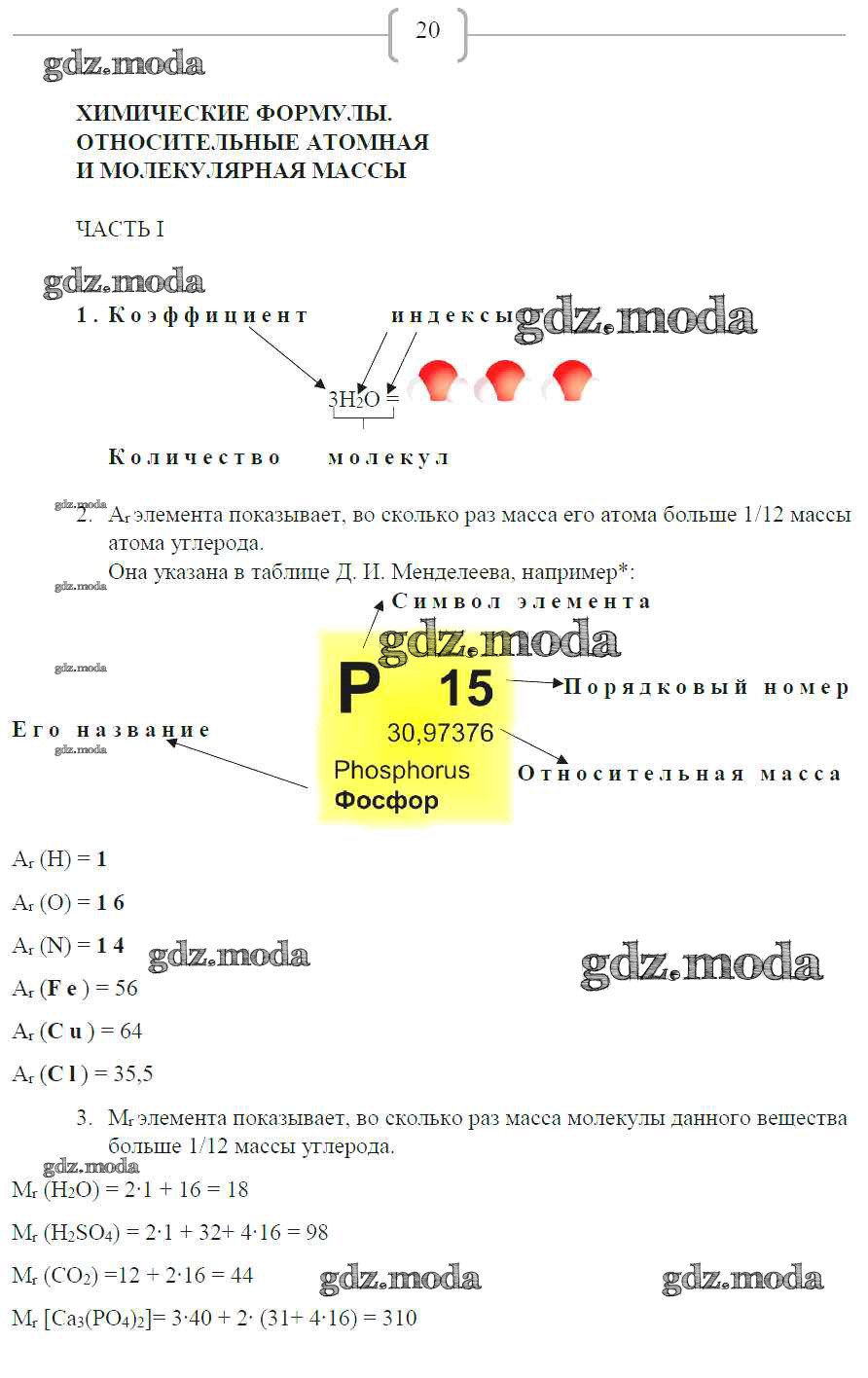 ГДЗ решение к заданию № 20 Химия 8 класс рабочая тетрадь Габриелян О.С. Дрофа 2018 ФГОС бесплатно на гдз.мода!