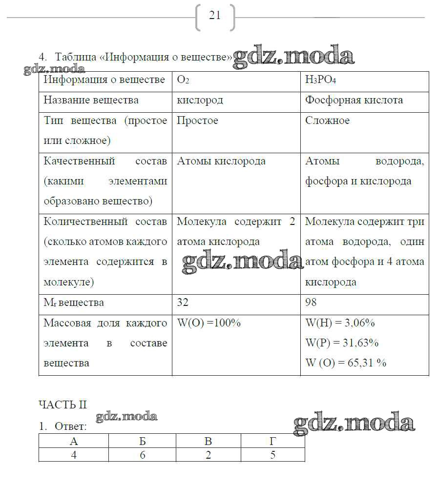 ГДЗ решение к заданию № 21 Химия 8 класс рабочая тетрадь Габриелян О.С. Дрофа 2018 ФГОС бесплатно на гдз.мода!