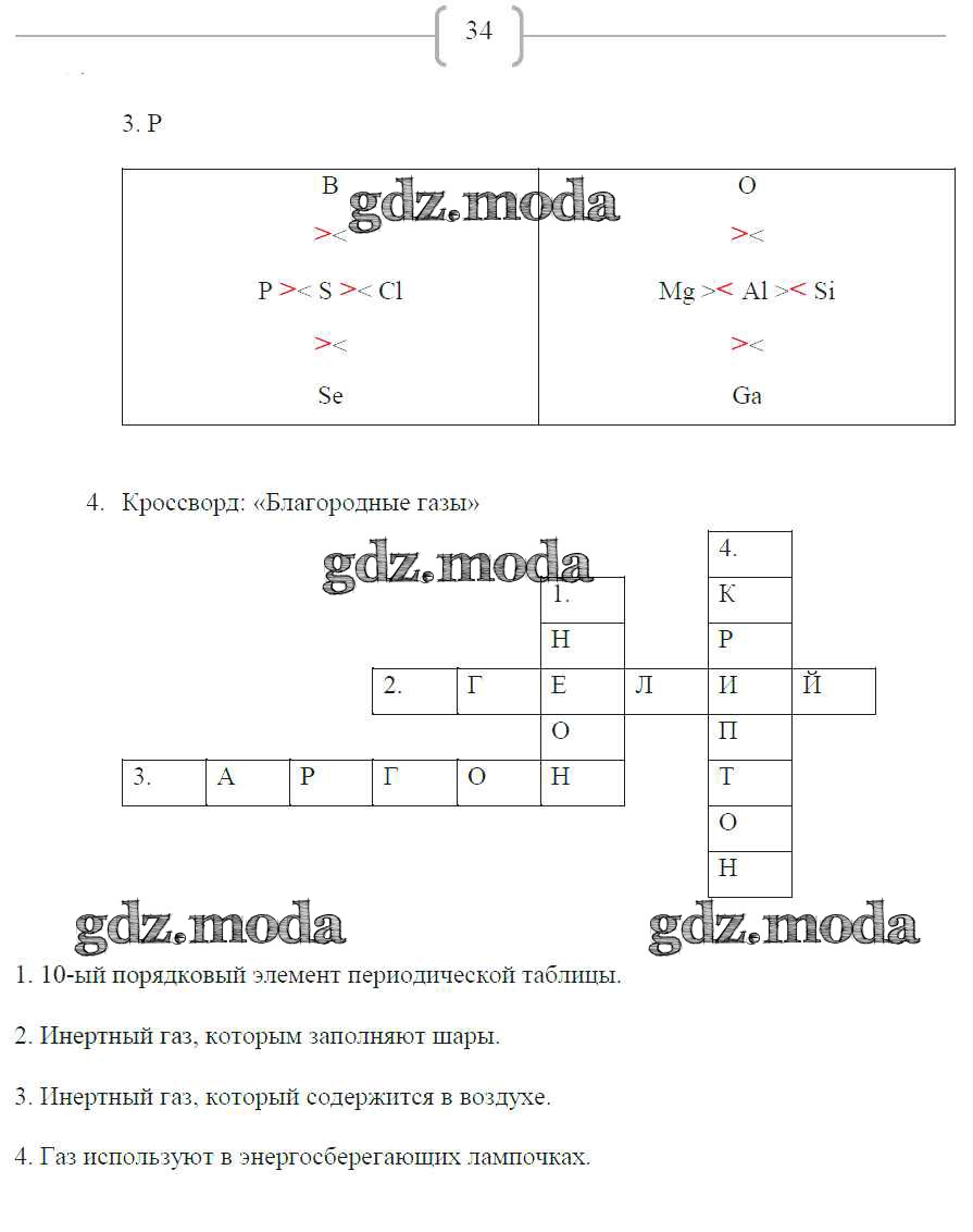 ГДЗ решение к заданию № 34 Химия 8 класс рабочая тетрадь Габриелян О.С. Дрофа 2018 ФГОС бесплатно на гдз.мода!