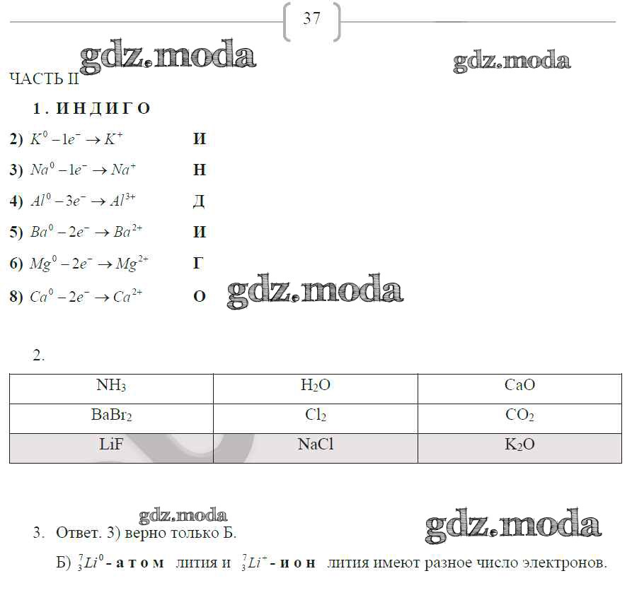 ГДЗ решение к заданию № 37 Химия 8 класс рабочая тетрадь Габриелян О.С. Дрофа 2018 ФГОС бесплатно на гдз.мода!