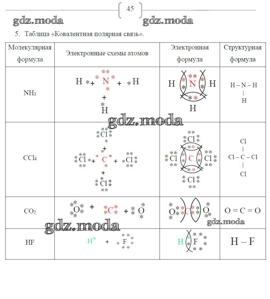 ГДЗ решение к заданию № 45 Химия 8 класс рабочая тетрадь Габриелян О.С. Дрофа 2018 ФГОС бесплатно на гдз.мода!