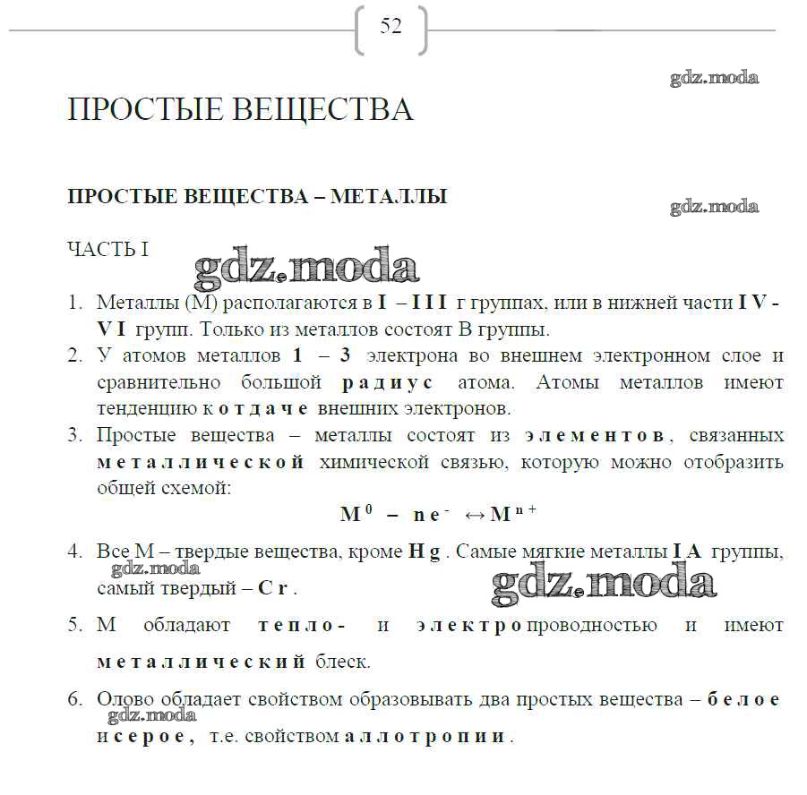ГДЗ решение к заданию № 52 Химия 8 класс рабочая тетрадь Габриелян О.С. Дрофа 2018 ФГОС бесплатно на гдз.мода!