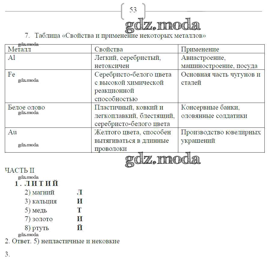 ГДЗ решение к заданию № 53 Химия 8 класс рабочая тетрадь Габриелян О.С. Дрофа 2018 ФГОС бесплатно на гдз.мода!