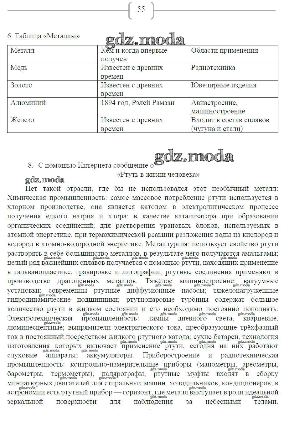 ГДЗ решение к заданию № 55 Химия 8 класс рабочая тетрадь Габриелян О.С. Дрофа 2018 ФГОС бесплатно на гдз.мода!