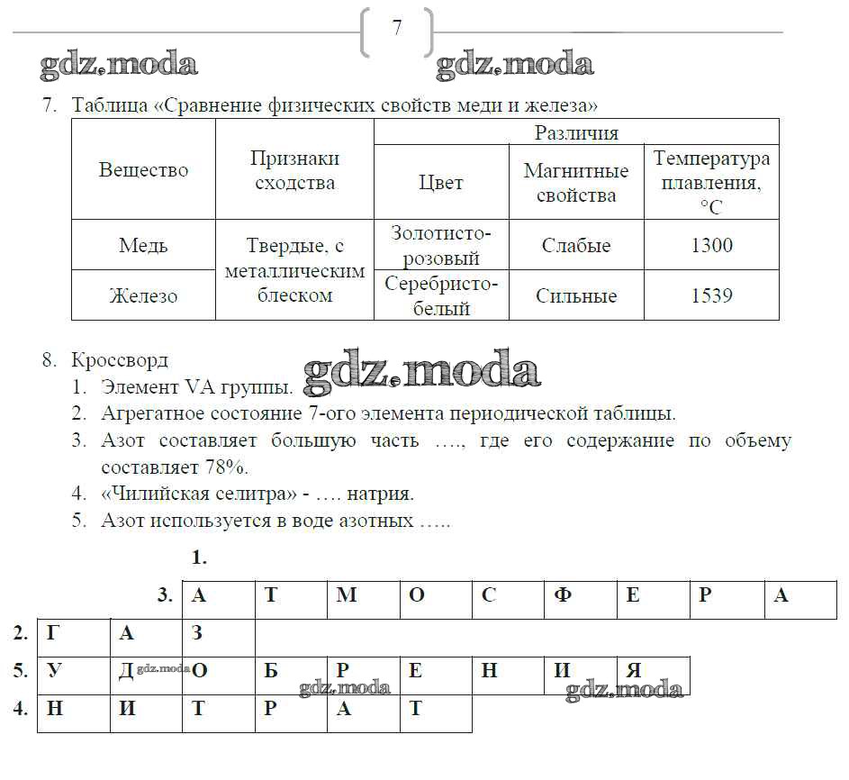 ГДЗ решение к заданию № 7 Химия 8 класс рабочая тетрадь Габриелян О.С. Дрофа 2018 ФГОС бесплатно на гдз.мода!