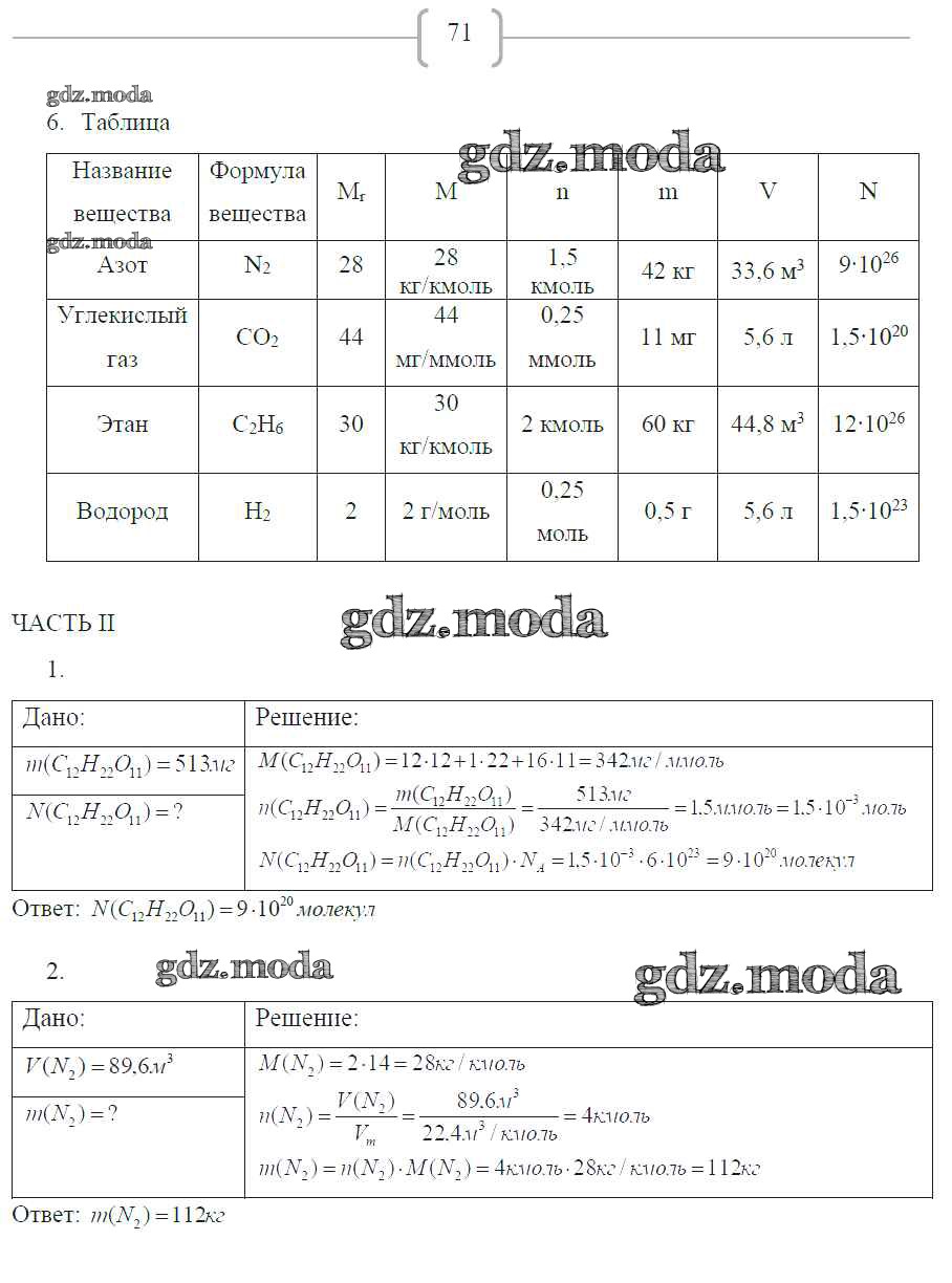 ГДЗ решение к заданию № 71 Химия 8 класс рабочая тетрадь Габриелян О.С. Дрофа 2018 ФГОС бесплатно на гдз.мода!