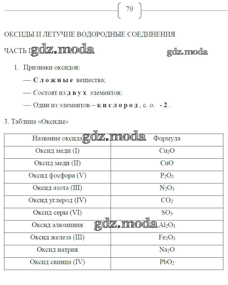 ГДЗ решение к заданию № 79 Химия 8 класс рабочая тетрадь Габриелян О.С. Дрофа 2018 ФГОС бесплатно на гдз.мода!