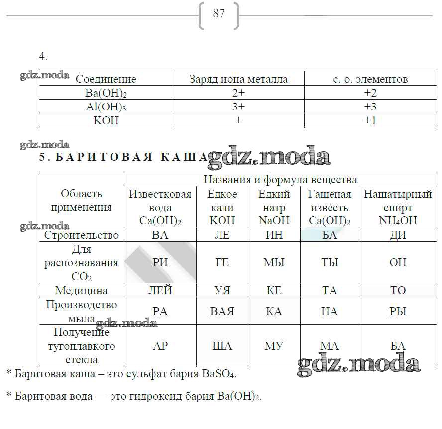 ГДЗ решение к заданию № 87 Химия 8 класс рабочая тетрадь Габриелян О.С. Дрофа 2018 ФГОС бесплатно на гдз.мода!