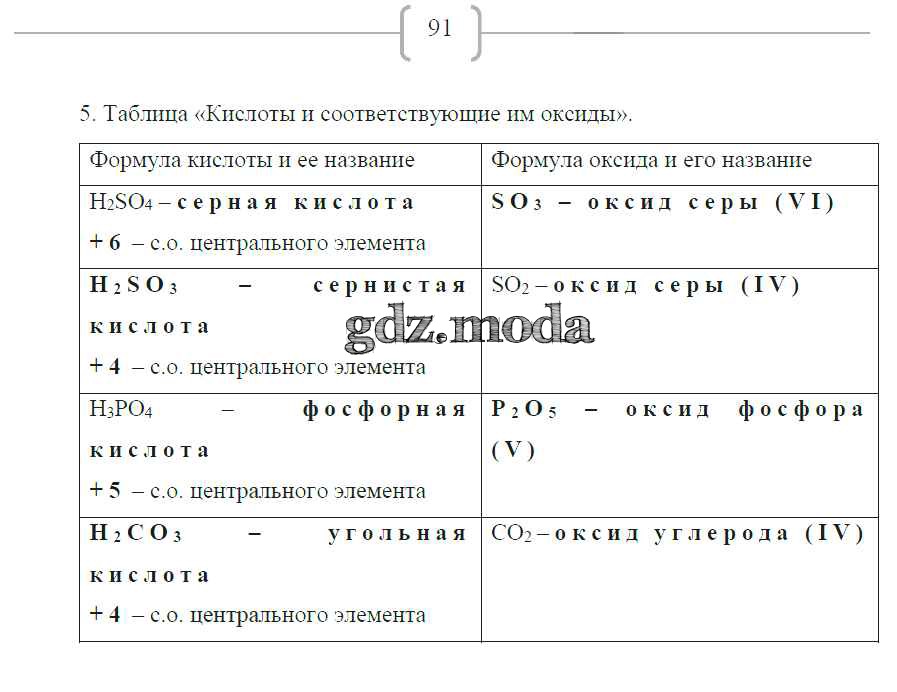 ГДЗ решение к заданию № 91 Химия 8 класс рабочая тетрадь Габриелян О.С. Дрофа 2018 ФГОС бесплатно на гдз.мода!