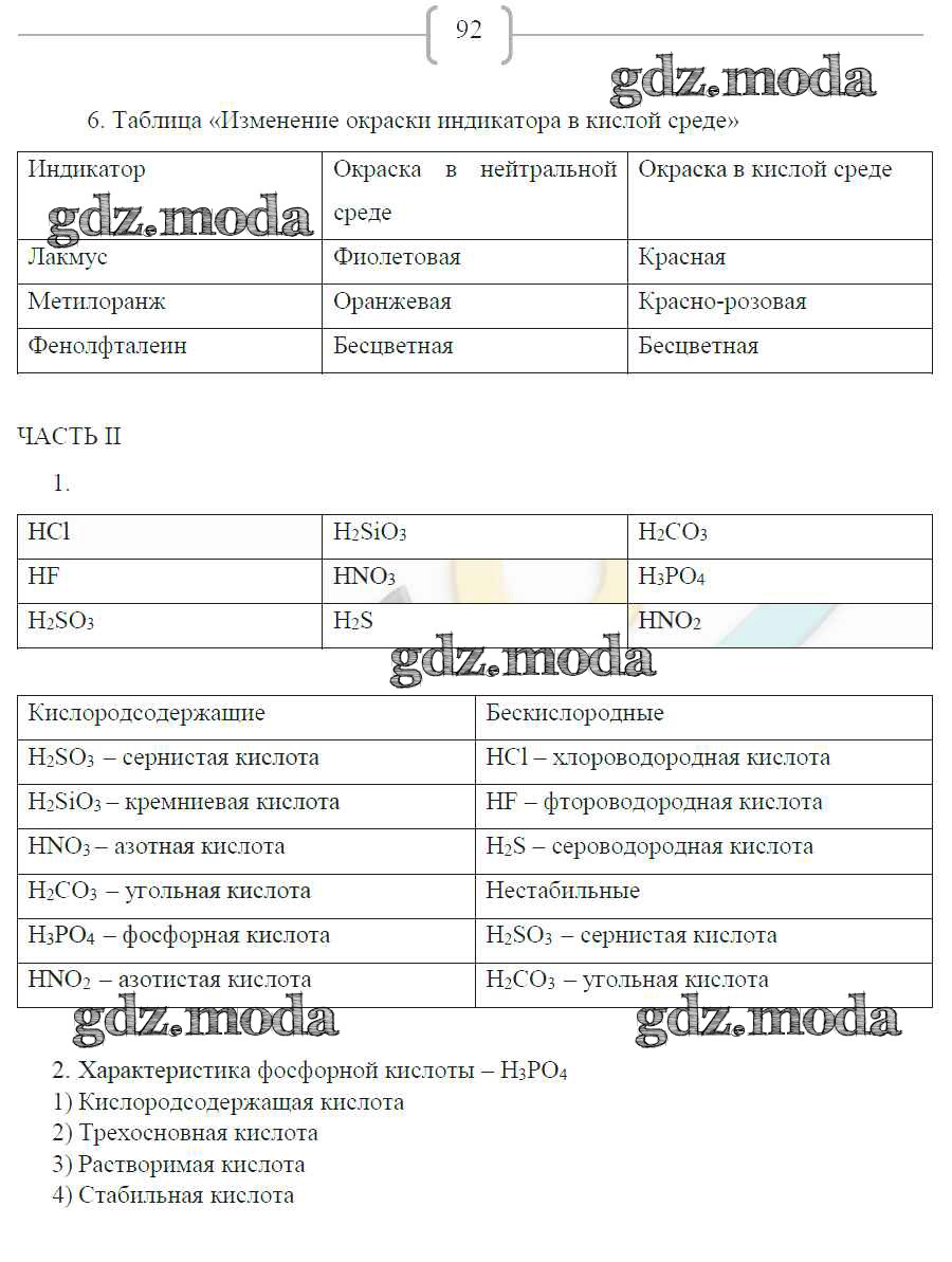 ГДЗ решение к заданию № 92 Химия 8 класс рабочая тетрадь Габриелян О.С. Дрофа 2018 ФГОС бесплатно на гдз.мода!