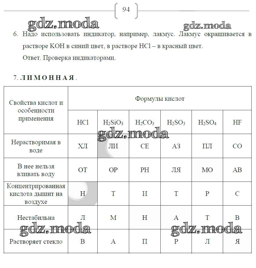 ГДЗ решение к заданию № 94 Химия 8 класс рабочая тетрадь Габриелян О.С. Дрофа 2018 ФГОС бесплатно на гдз.мода!