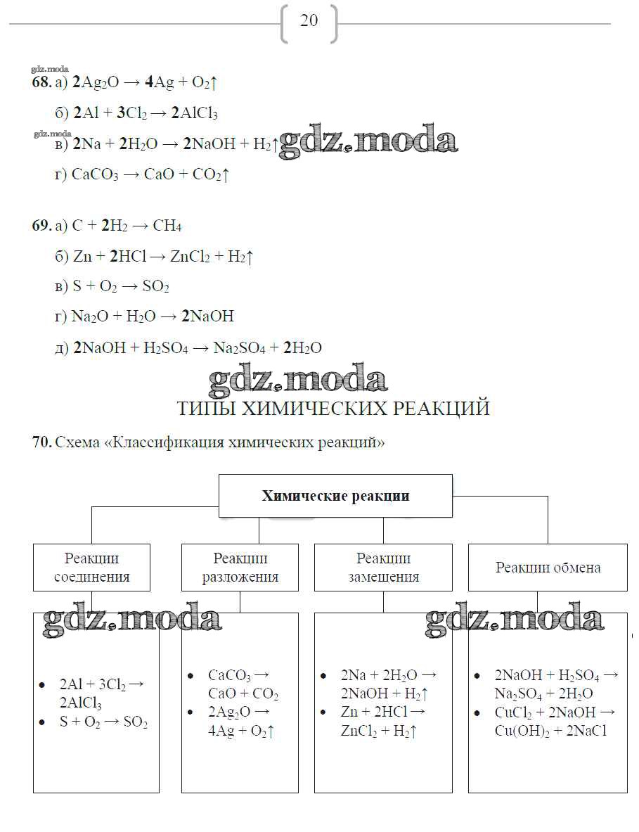 ГДЗ решение к заданию № 20 Химия 8 класс рабочая тетрадь Габрусева Н.И. Просвещение 2017 ФГОС бесплатно на гдз.мода!