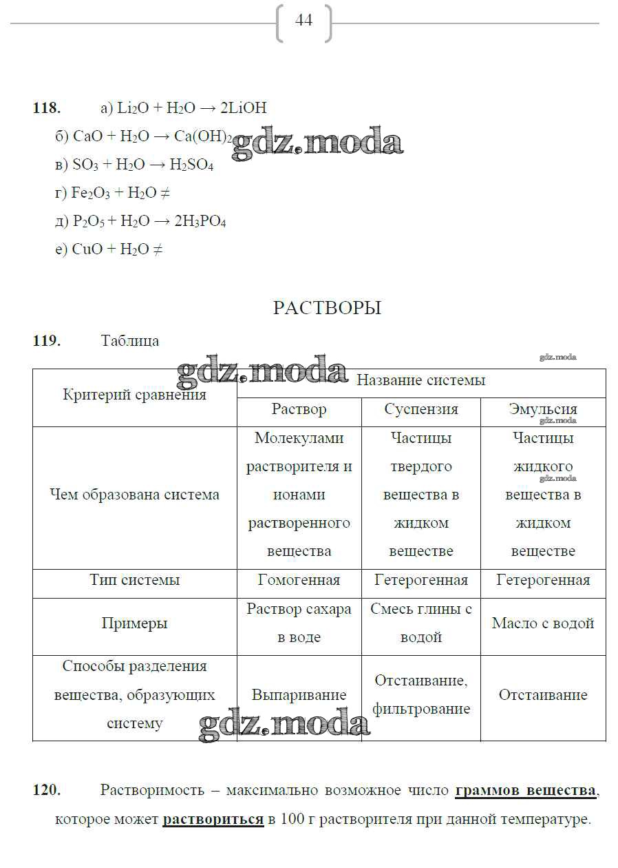 ГДЗ решение к заданию № 44 Химия 8 класс рабочая тетрадь Габрусева Н.И. Просвещение 2017 ФГОС бесплатно на гдз.мода!