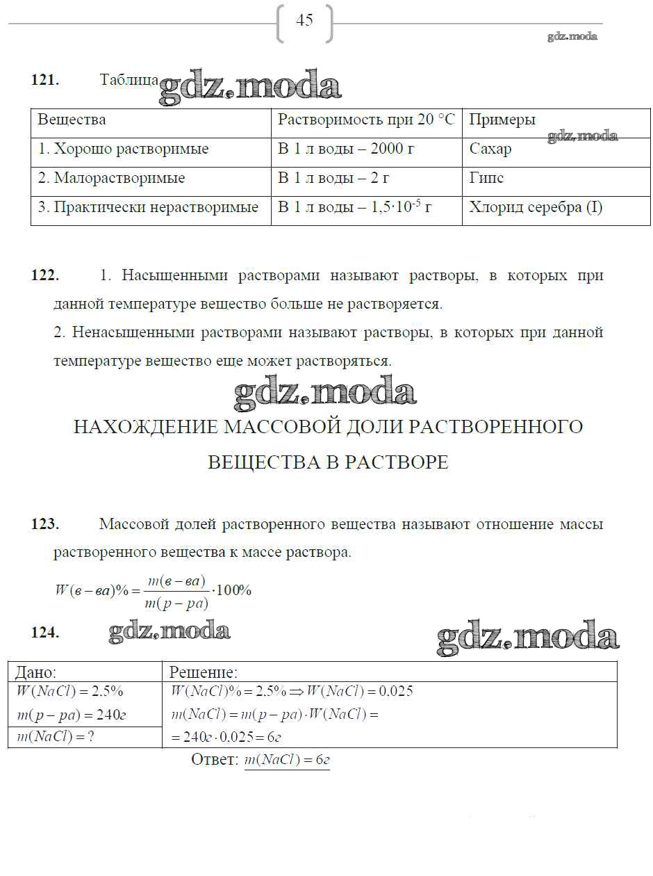 ГДЗ решение к заданию № 45 Химия 8 класс рабочая тетрадь Габрусева Н.И. Просвещение 2017 ФГОС бесплатно на гдз.мода!