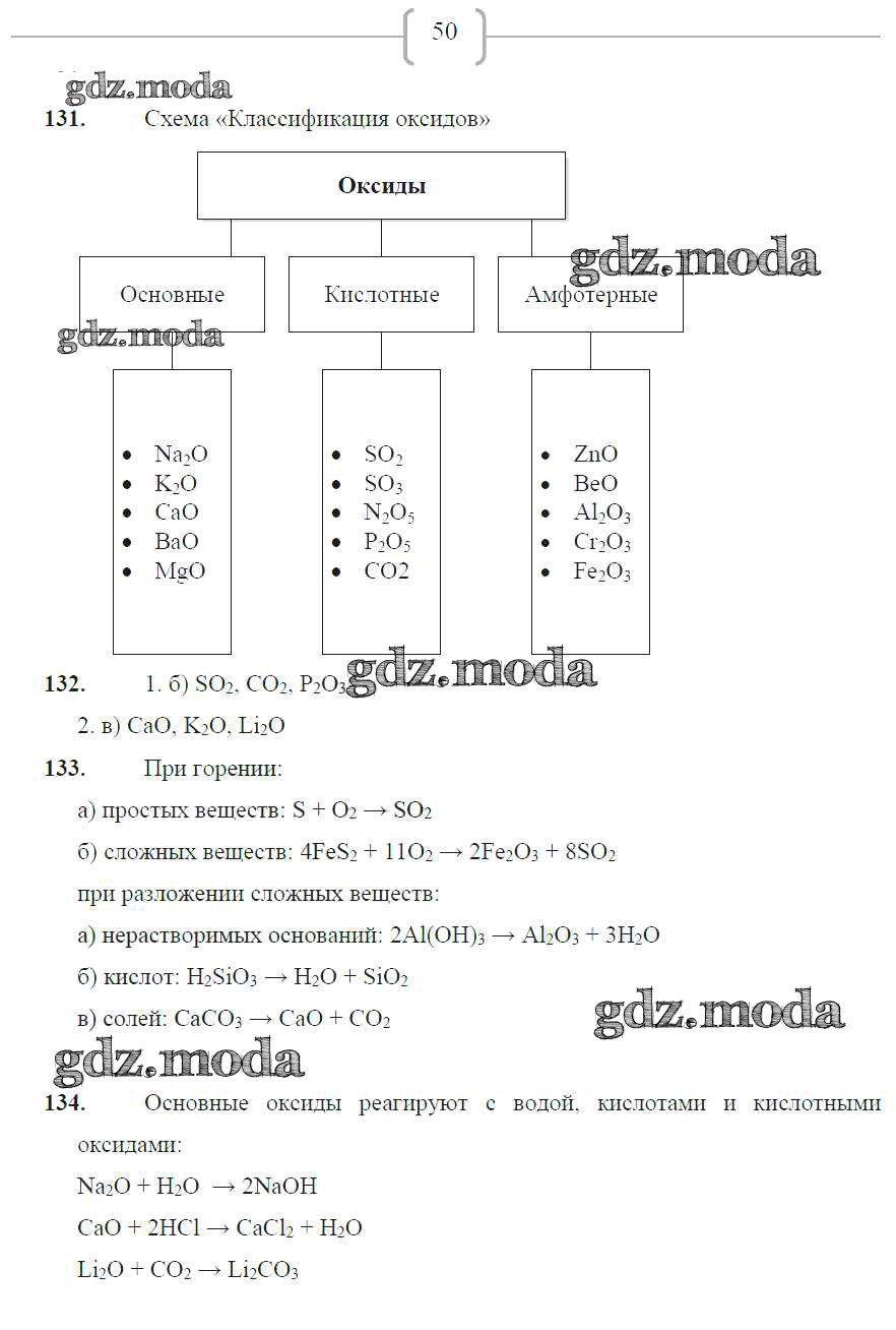ГДЗ решение к заданию № 50 Химия 8 класс рабочая тетрадь Габрусева Н.И. Просвещение 2017 ФГОС бесплатно на гдз.мода!