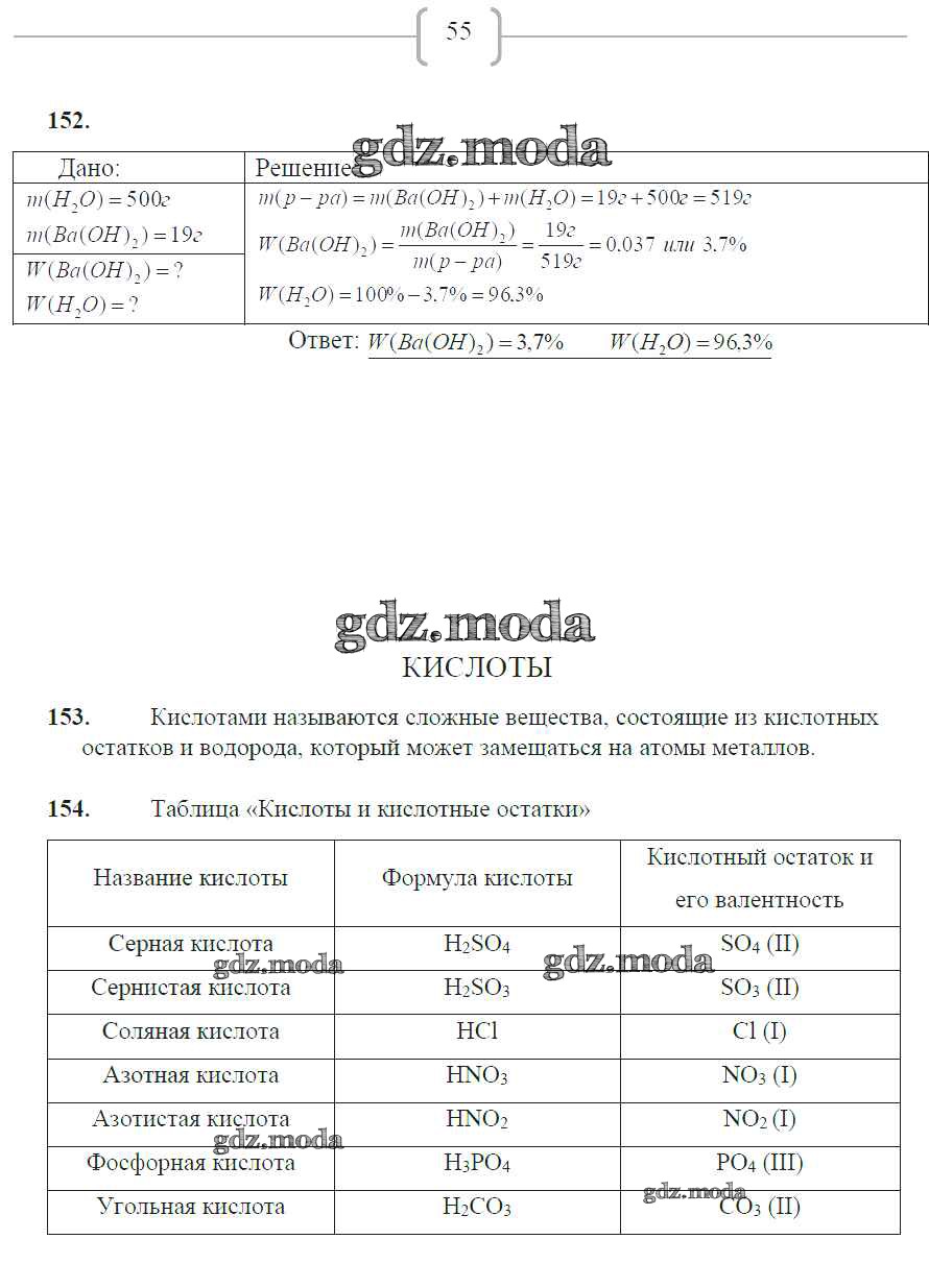 ГДЗ решение к заданию № 55 Химия 8 класс рабочая тетрадь Габрусева Н.И. Просвещение 2017 ФГОС бесплатно на гдз.мода!