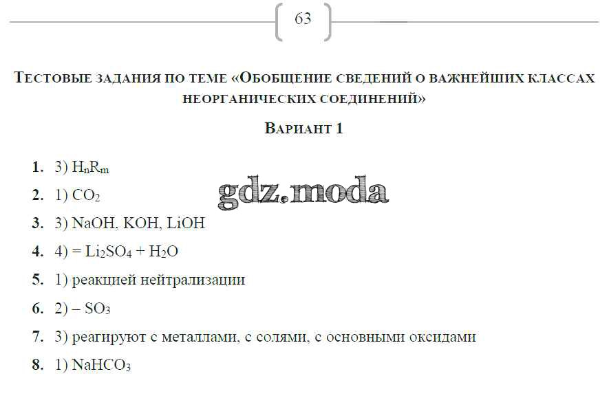 ГДЗ решение к заданию № 63 Химия 8 класс рабочая тетрадь Габрусева Н.И. Просвещение 2017 ФГОС бесплатно на гдз.мода!