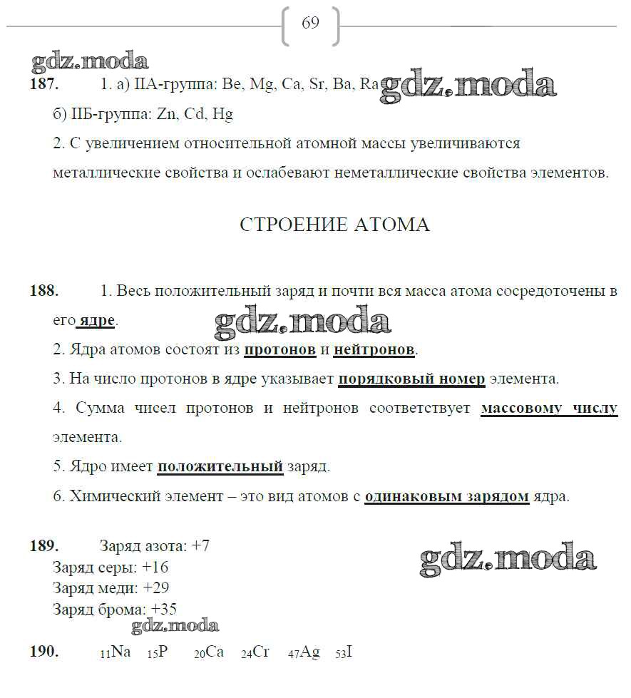ГДЗ решение к заданию № 69 Химия 8 класс рабочая тетрадь Габрусева Н.И. Просвещение 2017 ФГОС бесплатно на гдз.мода!