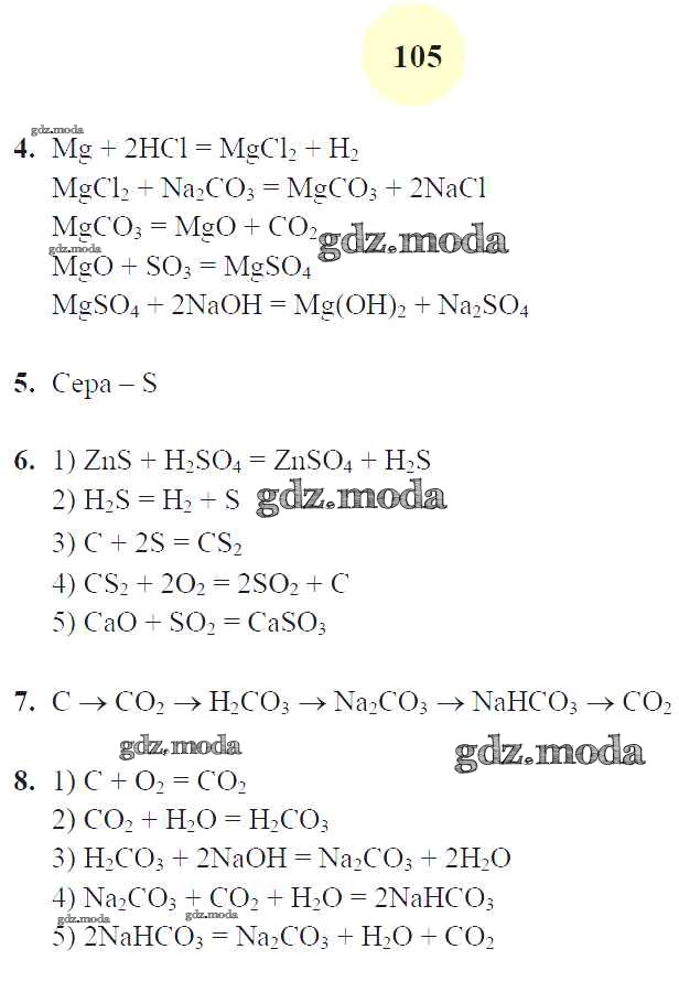 ГДЗ решение к заданию № 105 Химия 8 класс рабочая тетрадь Микитюк А.Д. (к уч. Габриеляна О.С.) Экзамен 2015 ФГОС бесплатно на гдз.мода!
