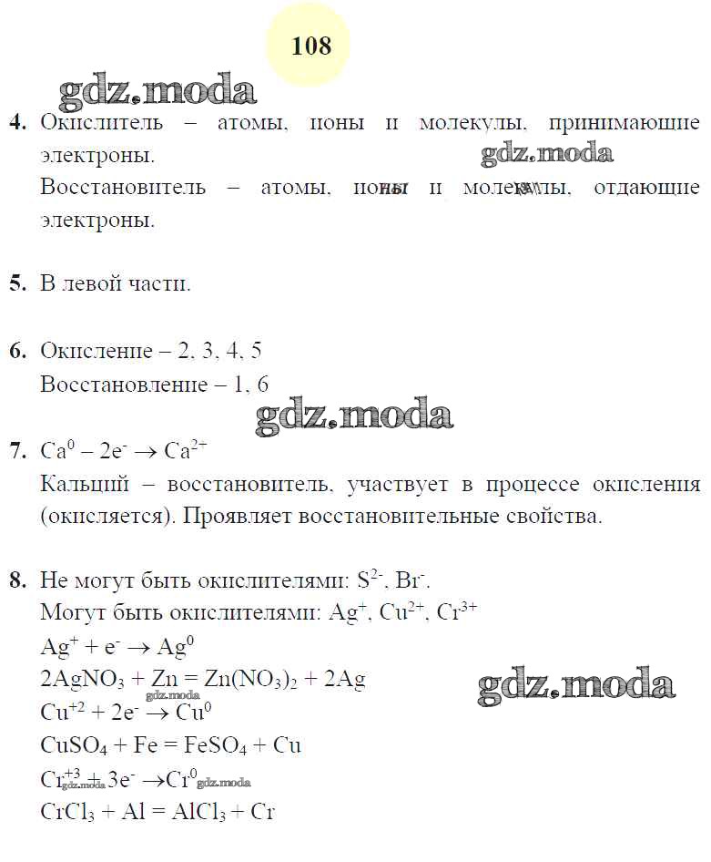ГДЗ решение к заданию № 108 Химия 8 класс рабочая тетрадь Микитюк А.Д. (к уч. Габриеляна О.С.) Экзамен 2015 ФГОС бесплатно на гдз.мода!