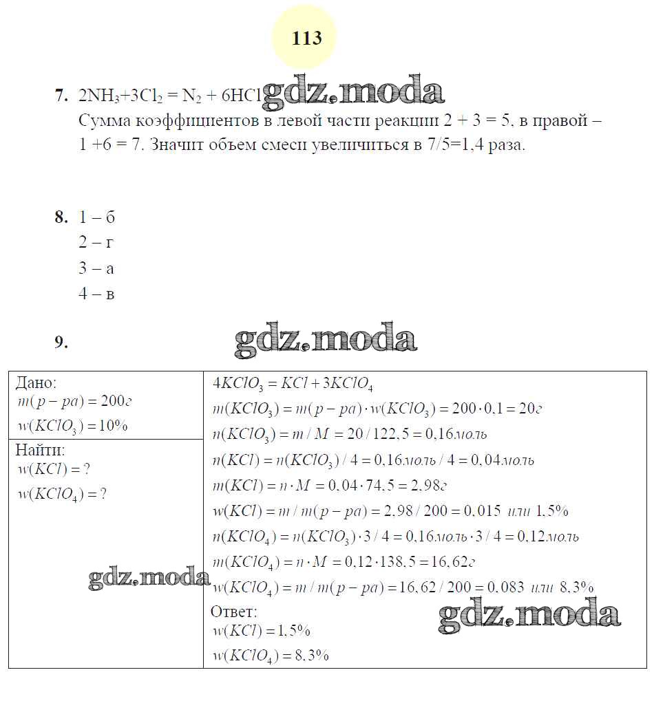ОТВЕТ на задание № 113 Рабочая тетрадь по Химии 8 класс Микитюк УМК