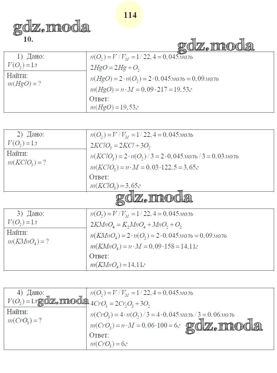 ГДЗ решение к заданию № 114 Химия 8 класс рабочая тетрадь Микитюк А.Д. (к уч. Габриеляна О.С.) Экзамен 2015 ФГОС бесплатно на гдз.мода!