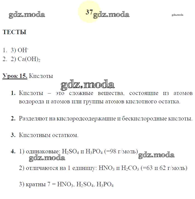 ГДЗ решение к заданию № 37 Химия 8 класс рабочая тетрадь Микитюк А.Д. (к уч. Габриеляна О.С.) Экзамен 2015 ФГОС бесплатно на гдз.мода!
