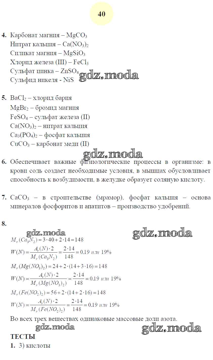 ОТВЕТ на задание № 40 Рабочая тетрадь по Химии 8 класс Микитюк УМК