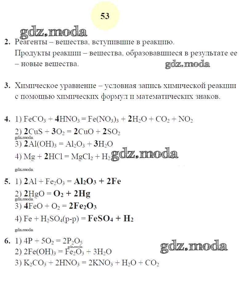 ГДЗ решение к заданию № 53 Химия 8 класс рабочая тетрадь Микитюк А.Д. (к уч. Габриеляна О.С.) Экзамен 2015 ФГОС бесплатно на гдз.мода!