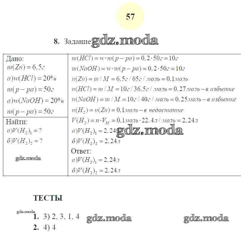 ГДЗ решение к заданию № 57 Химия 8 класс рабочая тетрадь Микитюк А.Д. (к уч. Габриеляна О.С.) Экзамен 2015 ФГОС бесплатно на гдз.мода!